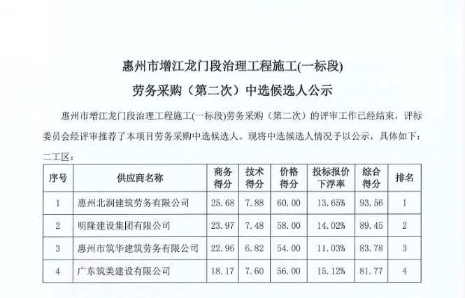 惠州市水電建筑工程有限公司勞務供應商庫擴庫評審結(jié)果公示……